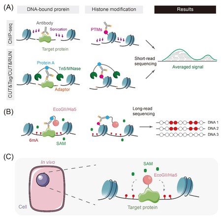 5) Weng, Z., Ruan, F., Chen, W., et al. 2023. BIND&MODIFY: a long-range method for single-molecule mapping of chromatin modifications in eukaryotes. Genome Biology. 24(1): 61.